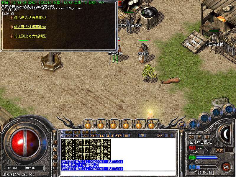 1.说明:新人在新人村可以直接到达40级,赠送圣战全套装备,便于游戏打宝