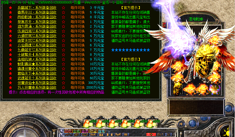 【元宝比例】 >> 1:200万 点卡多送80% 网银多送100% 开通了多冲多送 无任何客服冲值一律在官网