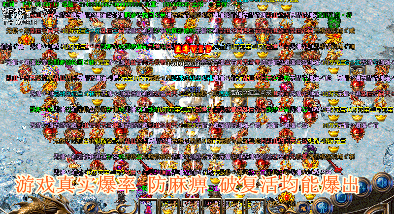 游戏介绍③ >> 大小怪物都可以暴元宝,奖卷,龙珠,人民币,刮刮彩,物品丰富,不会乏味,只要你肯花时间不花钱照样当爷!