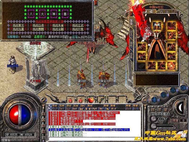 8大令牌可挑战八大神兽。朱雀,青龙,白虎,玄武四大神石可在土城综合服务锻造5000W经验.