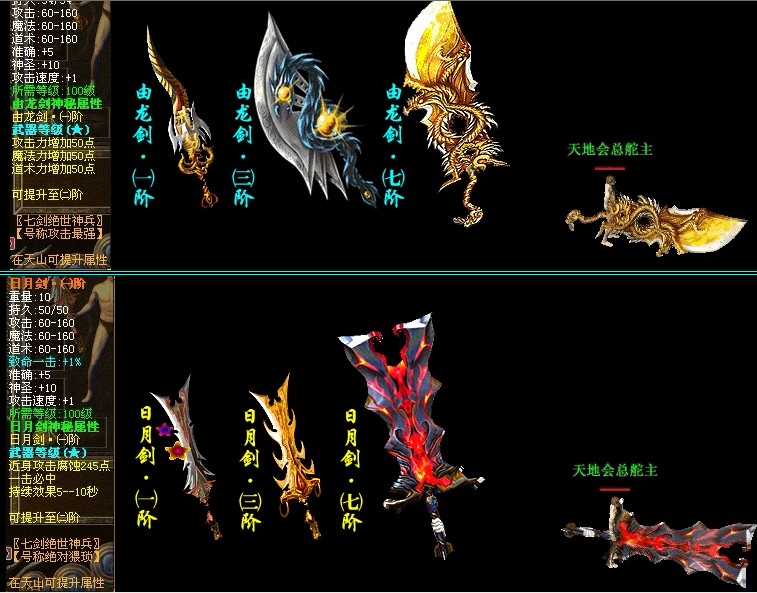 [21]玩家100级免费赠送七剑神兵,绝世武器可以提升7个阶段,终极阶段附加特殊功能,每一把武器都有他独特的地方!