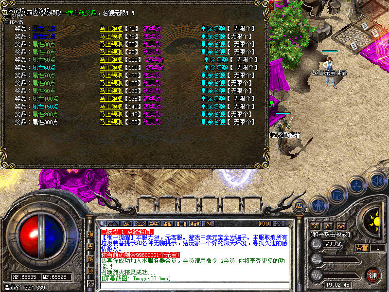 【攻沙奖励】:服务器开放两天统一攻沙,首次攻沙奖励200W元宝+沙武器一把,合区后天天攻沙奖励50W元宝+沙武器一把。