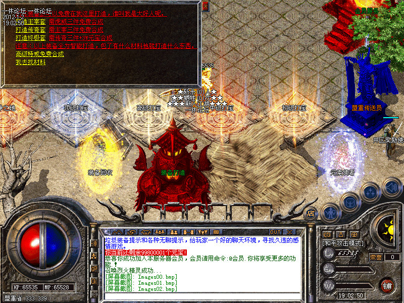 【装备合成】:增加各种装备免费合成系统,各套装带齐可以触发更高属性!会员接待处更有更加多免费合成!!!