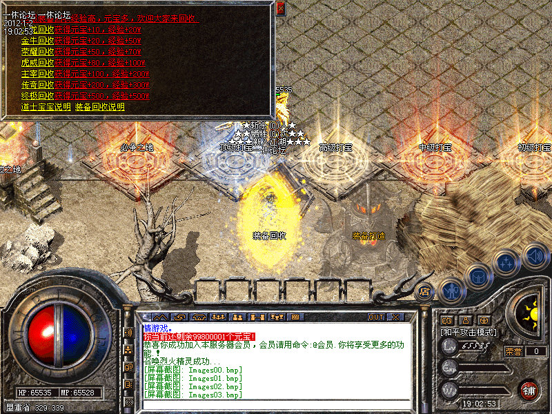 【赚取元宝】:元宝获得主要靠回收装备,元宝回收设置合理,金牛装备满地暴都可回收元宝哦,详细请进游戏体验,如果你打1小时装备,回收元宝绝对让你笑!