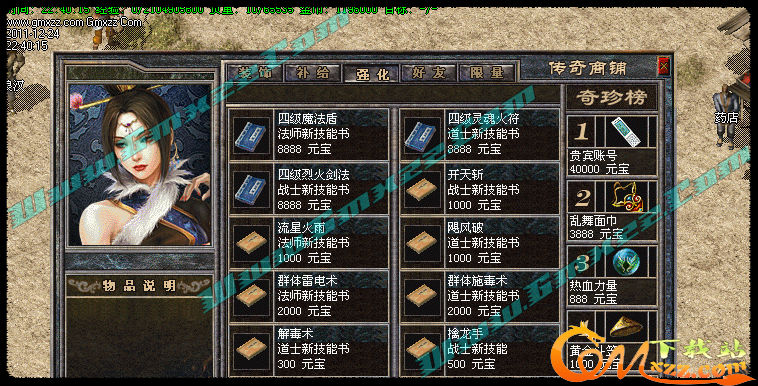 传奇服务端名称:GM下载站论坛1.99必杀乱舞元素版,狐月山庄,极限之地,广寒宫,桑拿泡点[HeroM2]