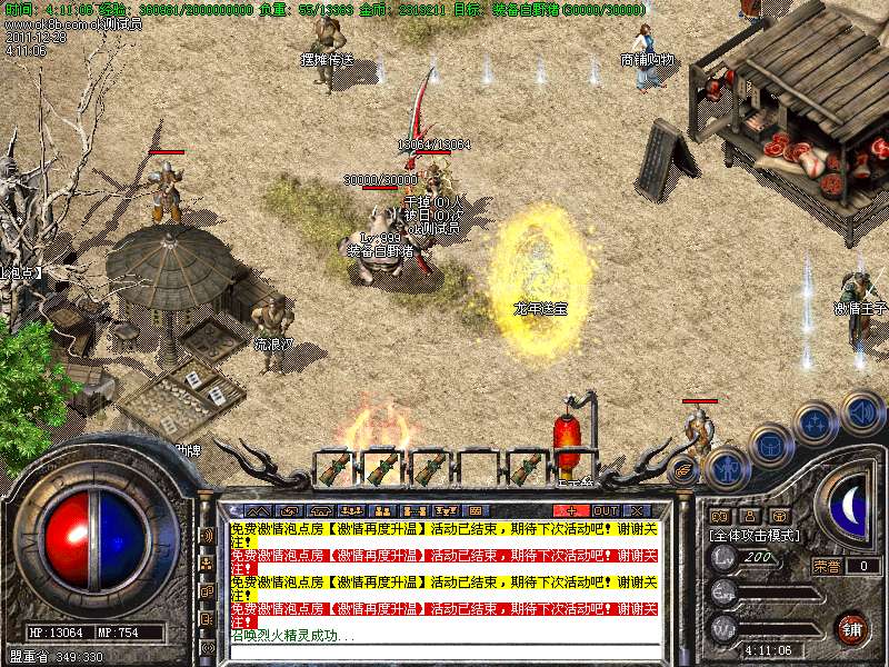 【4】:荣誉地狱,刷新全服所有高级BOSS,刷新快,需要元宝进入、二级雇佣兵可免费进入.此地为必争重地.刷新快,爆率高!