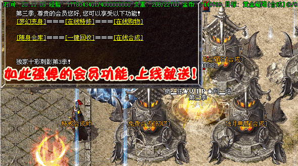 【公告】各个安全区自动喊话的NPC都是假的,系统喊话是红字和蓝字,所以请玩家特别注意不要上当.本服唯一客服无GM 会员命令为:@会员