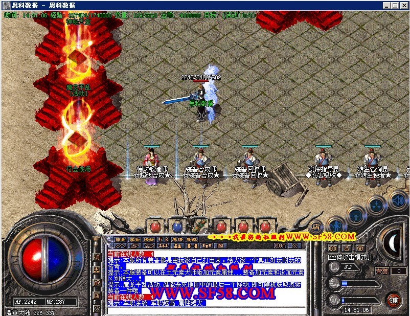 提示:游戏增加最新军职系统.各大地图都有不同等级军职证明爆出.战场每小时开启一次.在战场泡经验外.还可以激情PK杀人增加自己战绩.杀一人增加本身属性攻魔道1-1.最高100封顶.人物死亡一次也会掉一点战绩哦.