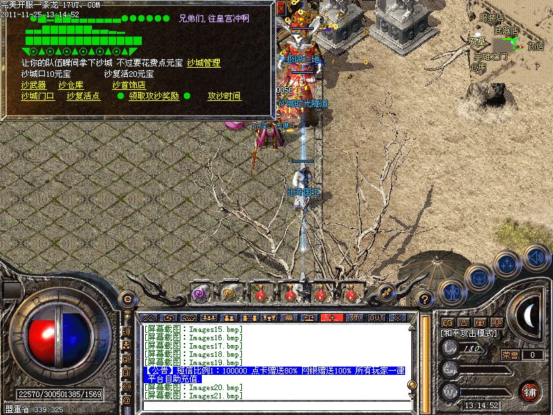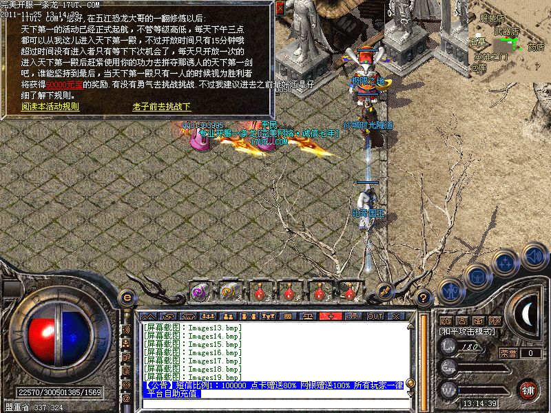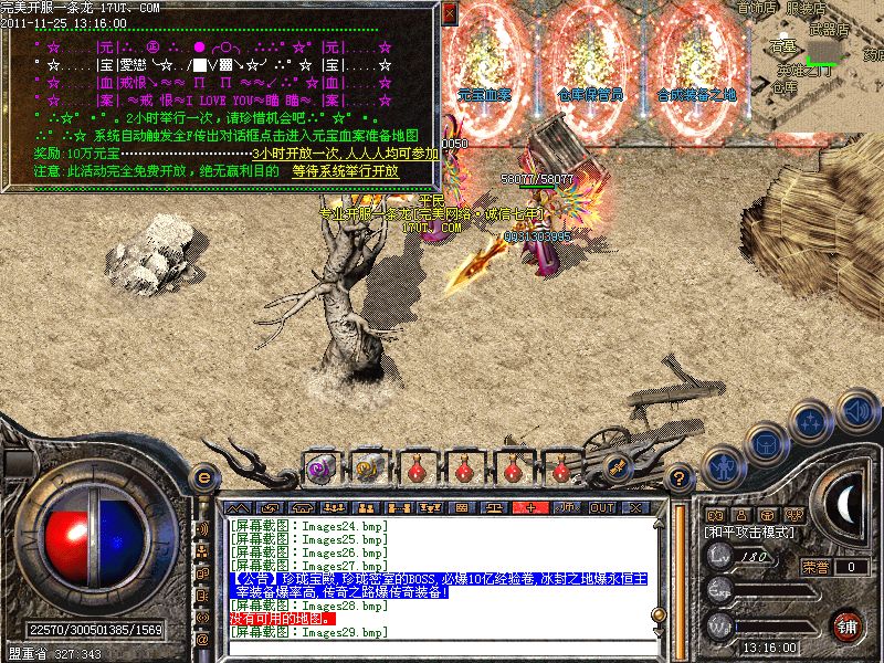 [元宝活动] 每小时[土药店门口]会有掉落大量元宝的[元宝树]刷出.