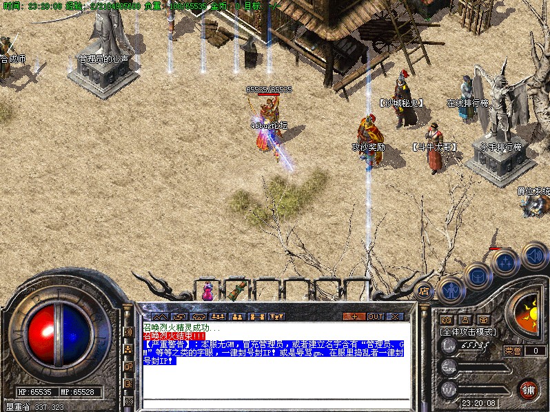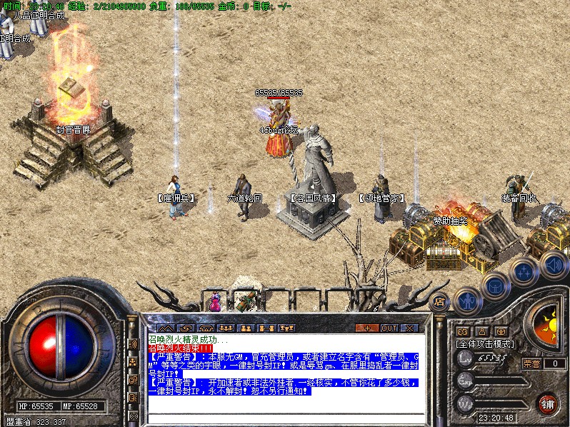 八.【特殊刷新】用魔法神石在土药旁边的魔法结阵可召唤出蚩尤.同时可获得丰富的奖品.--即本服的所有装备都可送出!
