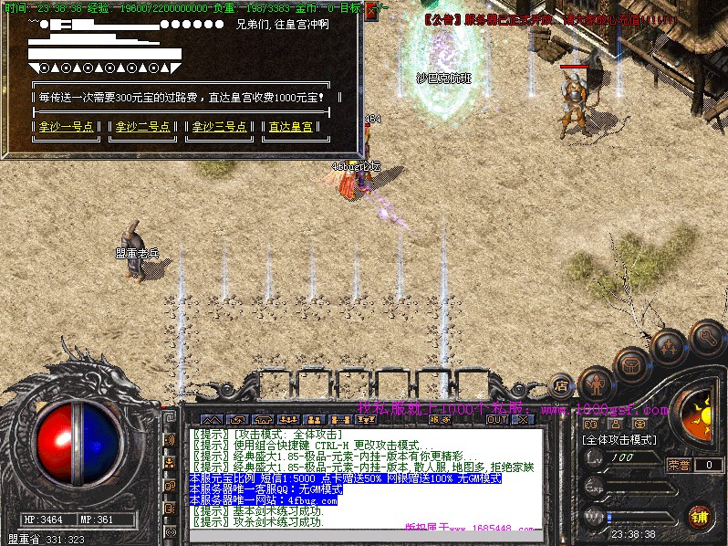 - ☉ V8引擎传奇端游【荒域专属单职业九大陆】Win一键端+配套补丁网站+架设教程