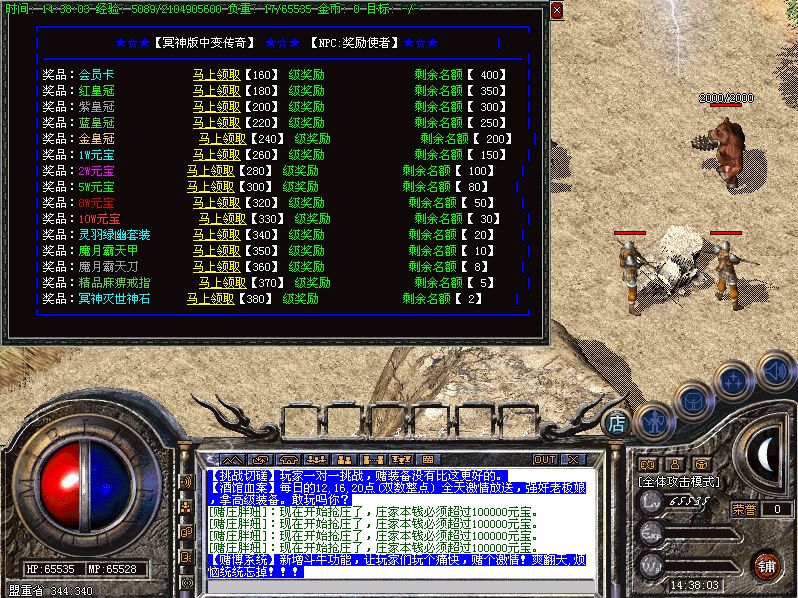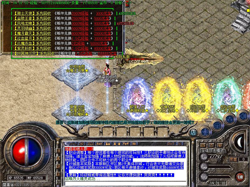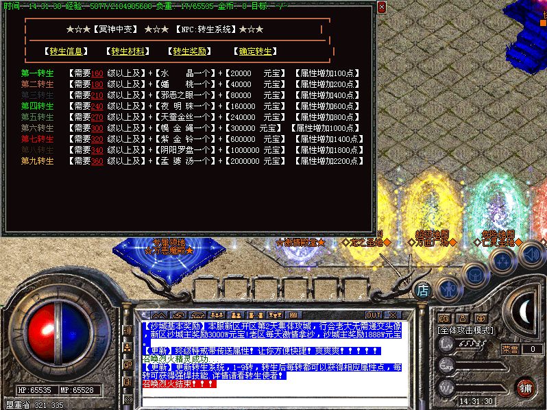 【更新】更新转生系统,1-9转,转生后每转都可以获得相应属性点,每转可获得强悍技能.详情请看转生使者!