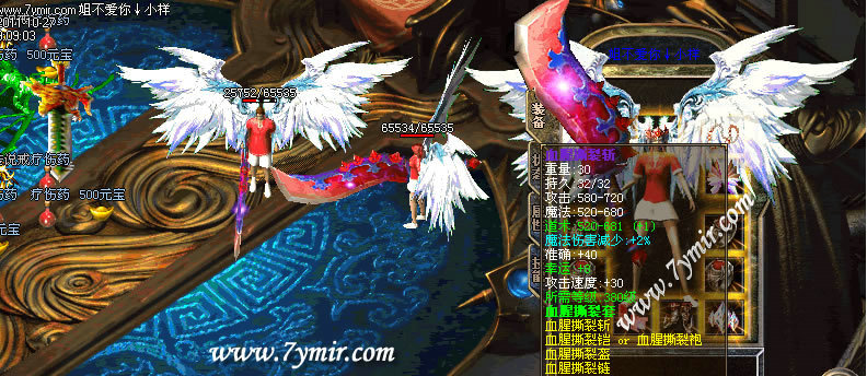 【更新】新增【血腥撕裂】超漂亮的顶级套,超高的属性!请到下载好补丁, 华丽的外观谁看了都会心动!全套出发HP+25500,MP+25500.攻魔道+2000.已激发,传送命令@move,超帅超刺激