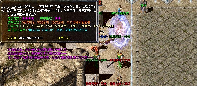 【传承宝盒系统】本服独一无二的高级功能,真正完美结合精炼系统,传承宝盒可以将一件蓝色以上级别的装备的附加属性摘下并保留在宝盒中,当玩家获得更高级装备时,就可以将低等级装备的极品属性转移到高级装备上来。因为,不管自己的装备是不是高级装备,都可以放心精炼,而不用担心浪费精炼材料。