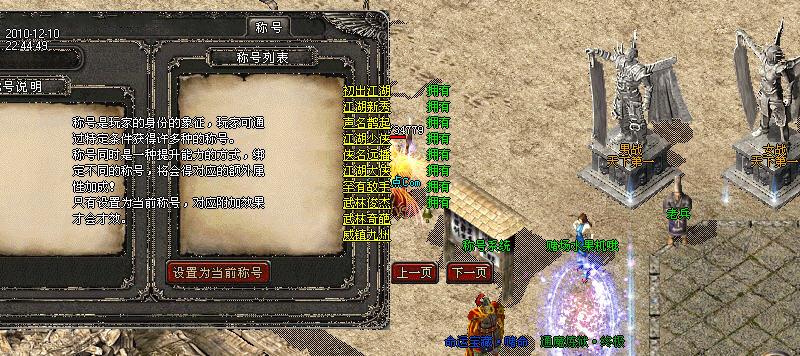 【称号系统】:你的成就,你的名号,都在封号系统中完美体现!包括荣誉称号,还有各类排名前十的称号。所有称号都有称号效果加成,每一个称号,都是实力,魅力的象征!