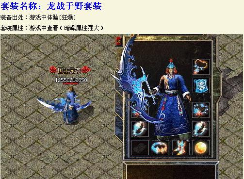 【介绍】高级装备:王者天堂、无尽宝殿、魔神绝地、龙之皇陵,爆率超高,龙战于野、混元天成,高级特戒狂爆
