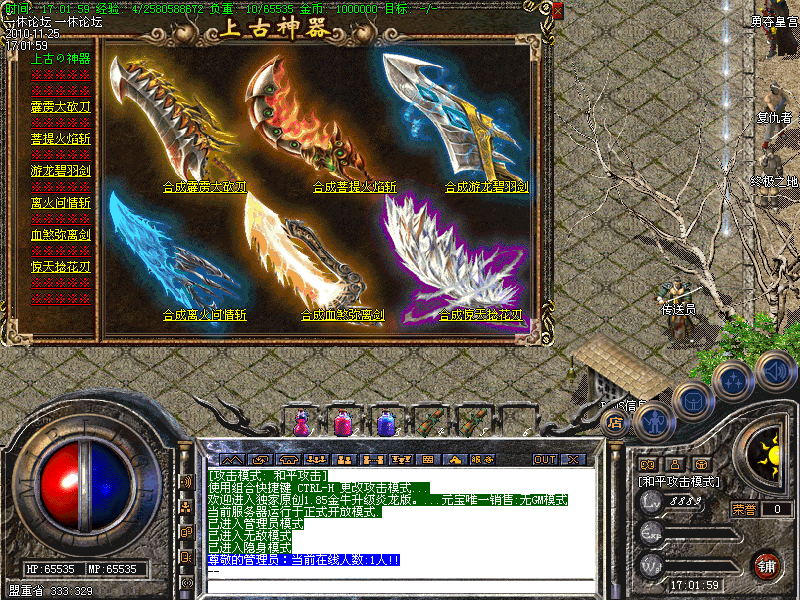 d.六道轮回:难度比较高,刷新轮回教主,暗之轮回教主(必暴开天类武器)