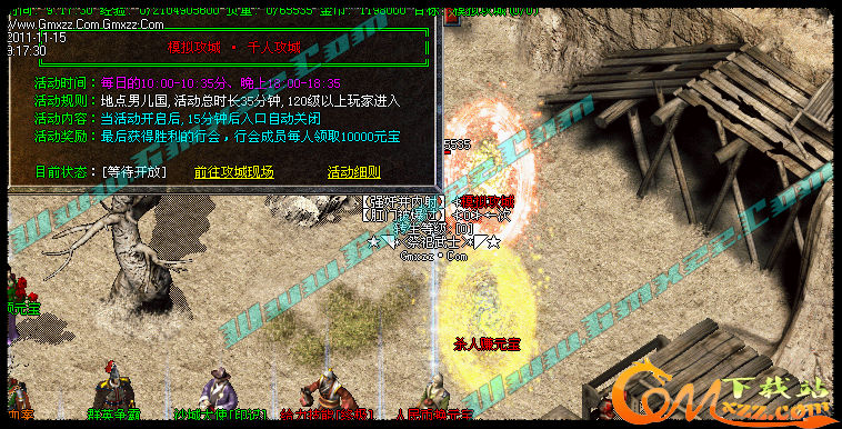 [活动]模拟攻城:全服100以上玩家才可以进入,下午15,晚上19点各一场,再现千人攻城场面,杀死守卫及城主,获得不同数量元宝,即杀即得