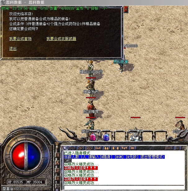 〖提示〗:本服务器为长期服,拒绝家族形式玩家,禁止外援,45级以下禁止攻城!为避免被删号,家族玩家请绕行,谢谢合作!晚9点到10点之间,藏宝阁沙巴克秘史可以传送进入皇宫!