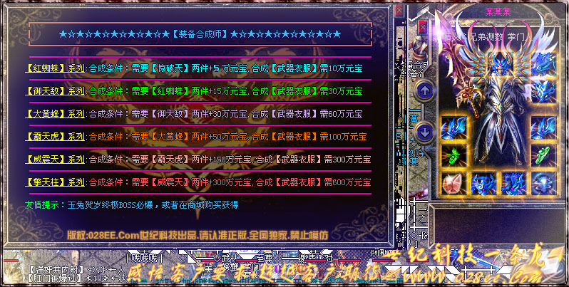 本服率先推出全新盛大装备!下载补丁只需30秒 本服率先更新盛大最新装备,全新技能!装备发光!全新变形金刚火热来袭