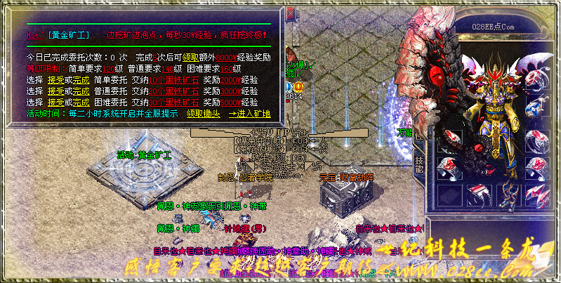 ①.【黄金矿工】:每天12.30-20.30之间每2小时开启一次,元宝经验装备,大放送