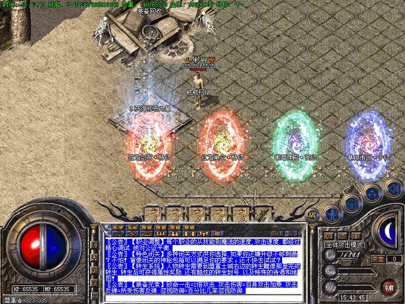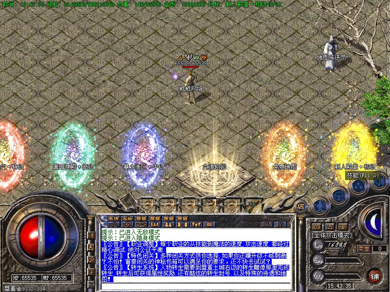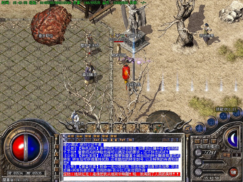【转生系统】人物转生需要到盟重土城右边的转生雕像那里完成转生.转生后可获得属性奖励.还有酷炫的转生封号.以及特殊的待遇和地图!