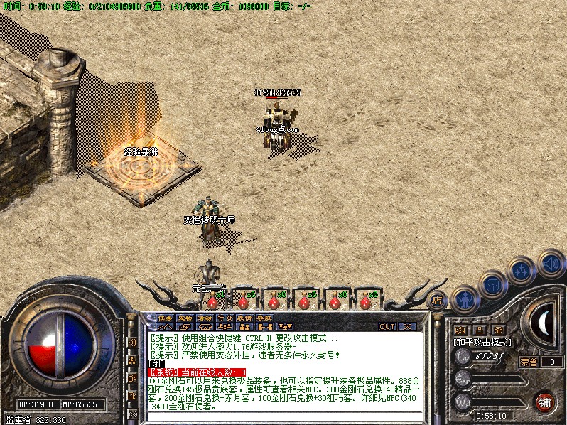 本版本在1.76的基础上进行修订,极大增加极品的爆率,牛逼装备不一定是顶级装备,有可能死神远远好于圣战。金刚石系统: