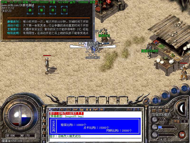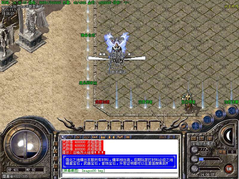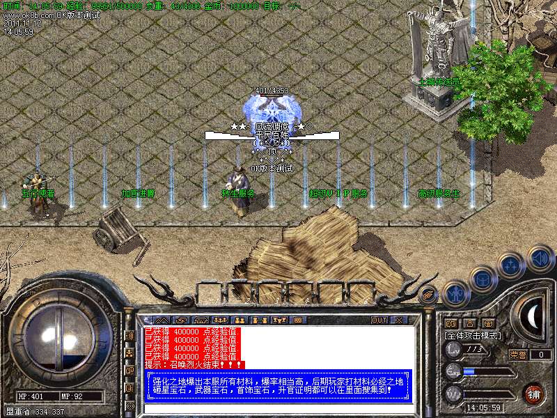 <4>:独家的万夫莫开:小怪10分钟!大怪30分钟。怪物爆率:<元宝、终极装备等等。。。