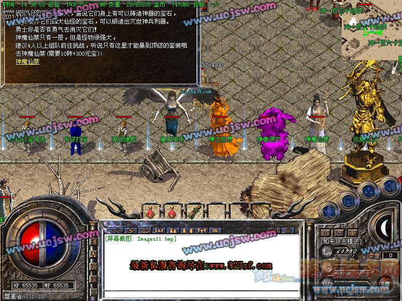 二.【地图介绍】:烟花秘穴,盘古地图,玛雅神殿,六道轮回,魔龙血域,六道轮回,神之地狱,雪域冰宫,散人天堂,永恒之塔,传奇庄园,地下城,万年废墟,,兽族部落,天威山庄等所有地图均有不同BOOS刷出!