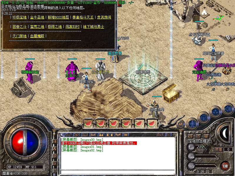5.每天单数整点举行送宝草人活动,双数整点举行比武大会,每天刷3次元宝神和装备神~增加压镖,在线领经验/