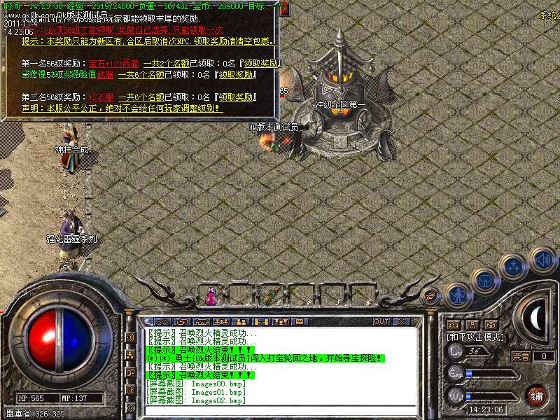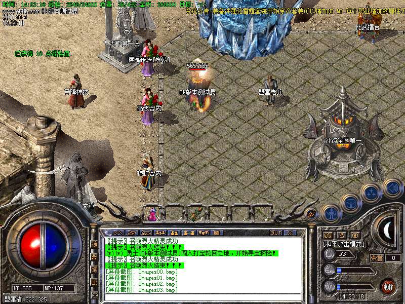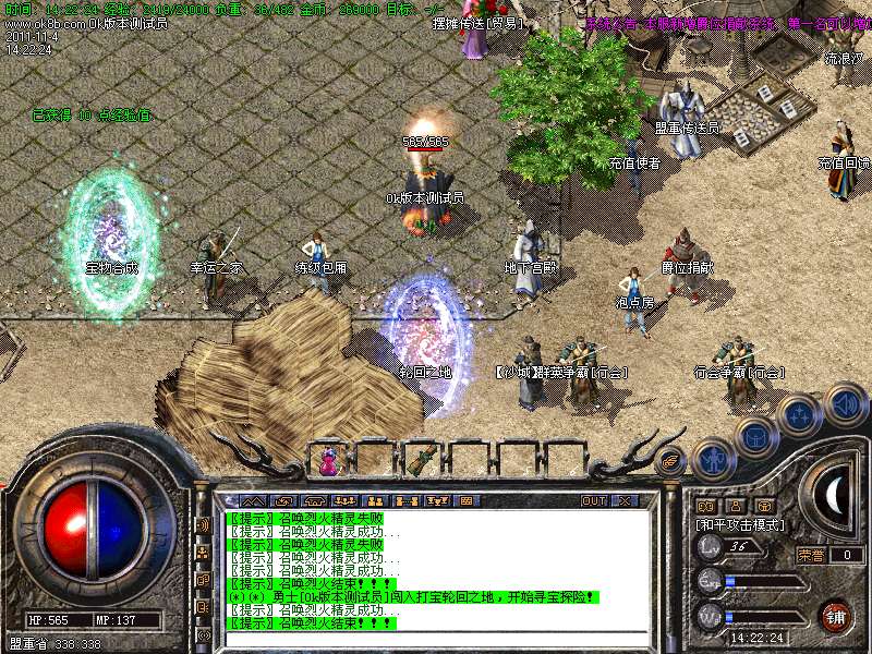 <4>:鼠标放在人物身上按TAB键快速获取玩家姓名,右击组队按钮可轻松实现开关组队,非常方便。道士47级招白虎51级狐狸战士,56召唤圣龙,60级玄武,68级召唤朱雀.