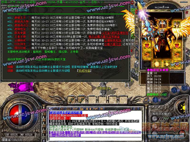 三.【特色活动】:每天一次的活动.斩杀任意怪物500只可获得500元宝的奖励.元宝自动增加在身上.注意查收!
