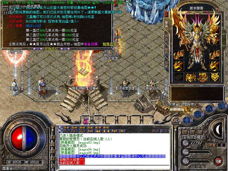 一.【地图介绍】:练级地图为、盘古、石墓、生死之间、幻境三层、霸者大厅、尸魔三层.特别自助刷怪地图恶魔广场为5倍经验*三倍经验石可实现15倍经验