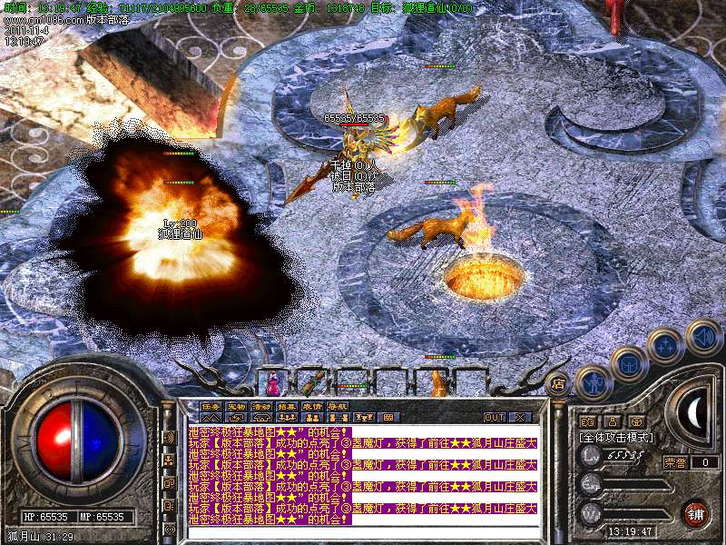 一.【特色活动】蚩尤必暴元素石.需要魔法神石提交,召唤出蚩尤同时可获得丰富的奖品.包括荣耀神斩、致命2套装卷、必杀首饰及武士神石、合成仙丹等大量奖品!