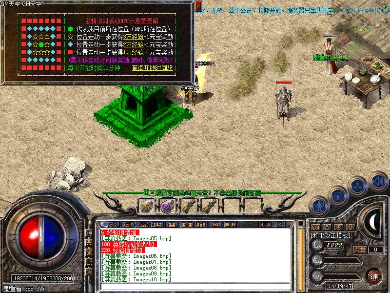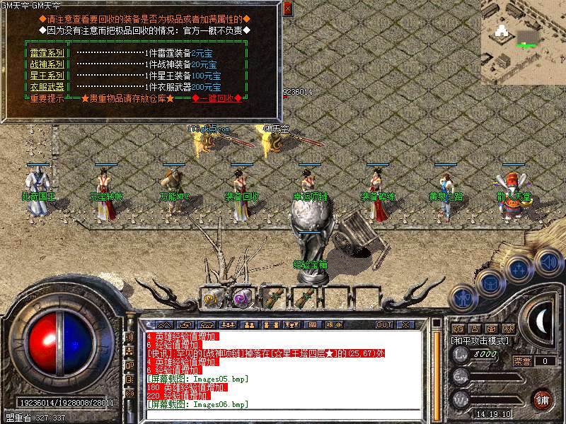 服务器元宝价格: 本服元宝比列最高1:200点卡送25%网银送50%本服无GM纯绿色。冲值请直接在游戏里通过短信冲值或进入官方网站网站登陆器查询/进行冲值!