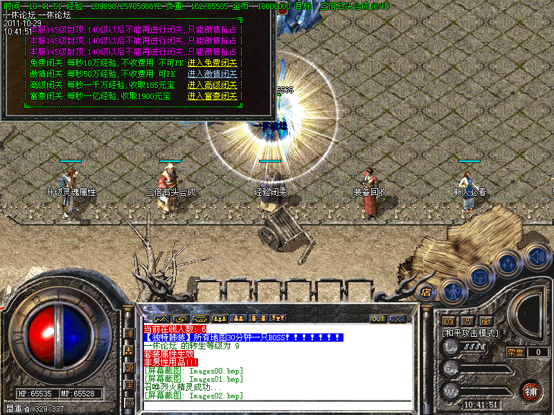 【升级方法】1.买双倍或三倍经验石打怪升级!2.回收装备升级!