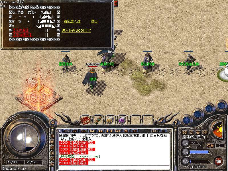 版本名称:361sf-独家1.85狂雷合击版|必争之地|传奇之城|积分系统|快捷买药[3K引擎]完整开区