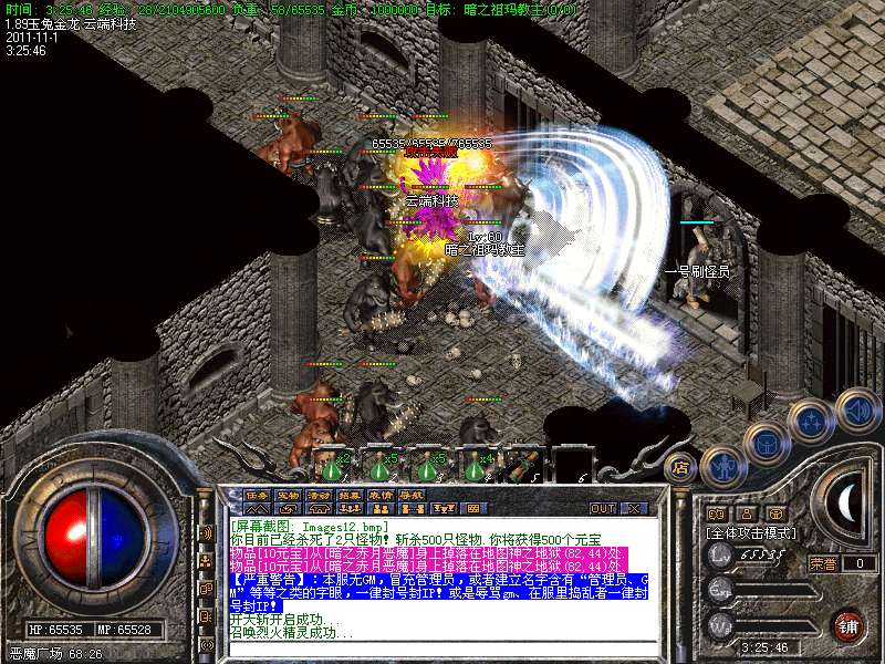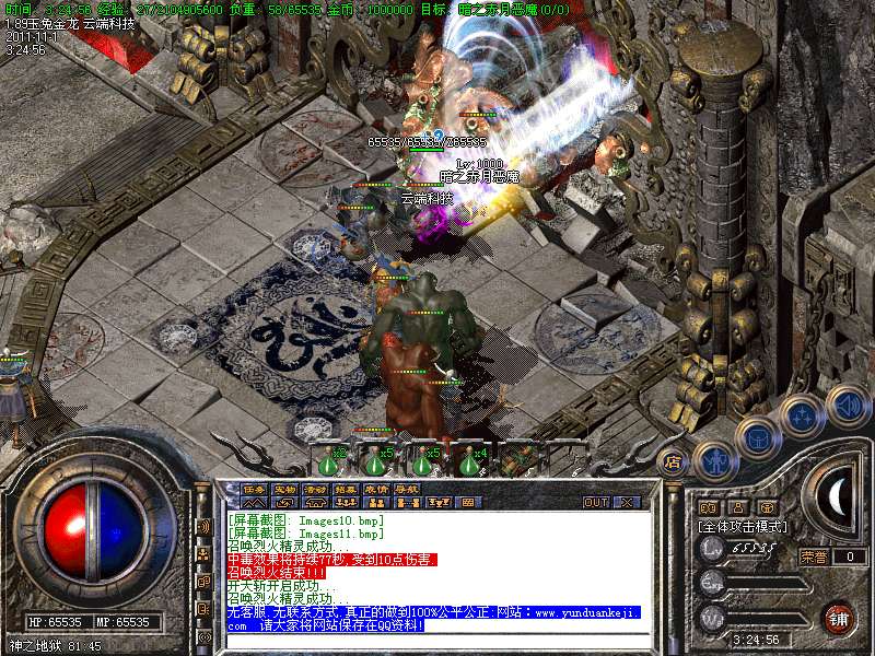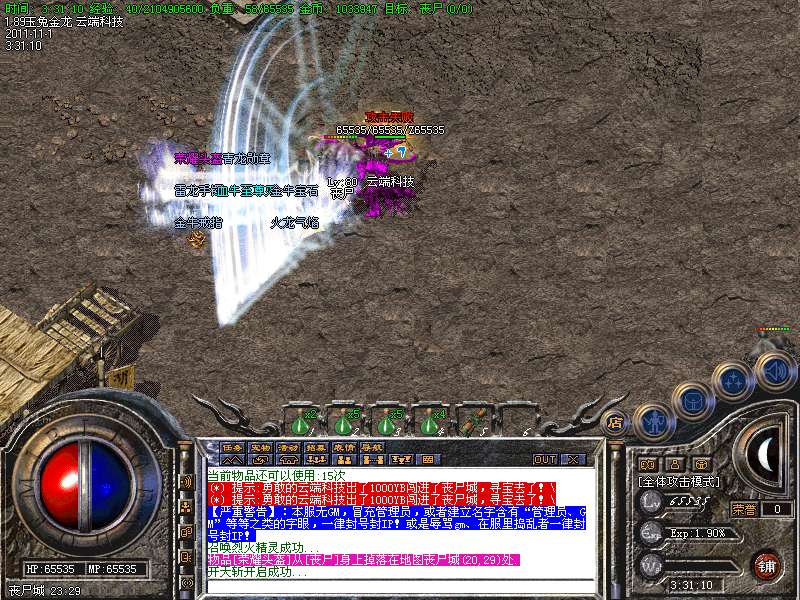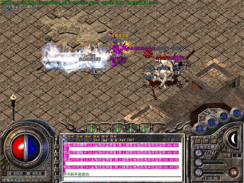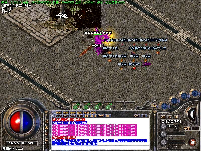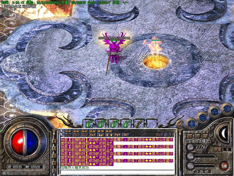 八.【特殊刷新】用魔法神石在土药旁边的魔法结阵可召唤出蚩尤.同时可获得丰富的奖品.--即本服的所有装备都可送出!