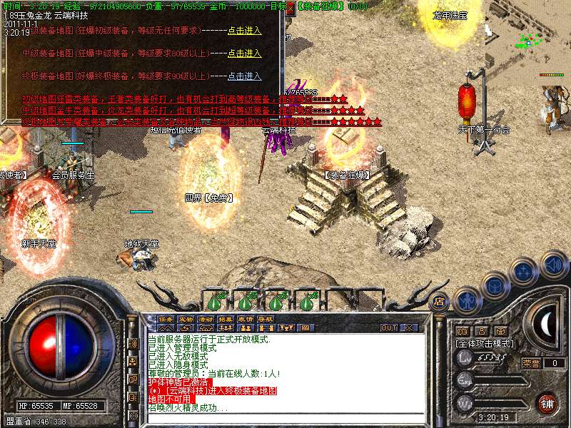一.【地图介绍】:练级地图为、盘古、石墓、生死之间、幻境三层、霸者大厅、尸魔三层.特别自助刷怪地图恶魔广场为5倍经验*三倍经验石可实现15倍经验