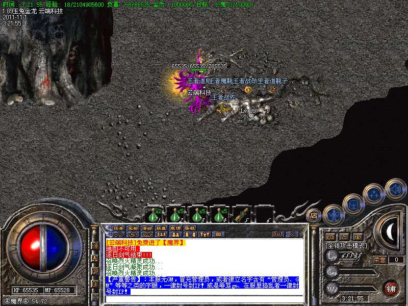 【新手介绍】:非RMB玩家,去[装备狂暴]打怪爆装备,可回收大量元宝!可以爆到王者、金牛、炎龙、荣耀、必杀装备!新手装备去魔龙城打,练级带3倍经验勋章去猪洞、蜈蚣洞!