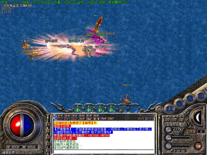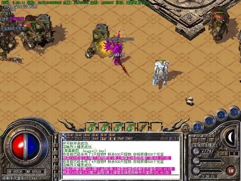 三.【特色活动】每天一次的活动.斩杀任意怪物500只可获得500元宝的奖励.元宝自动增加在身上.注意查收!