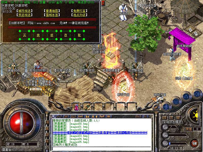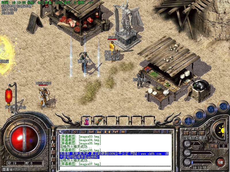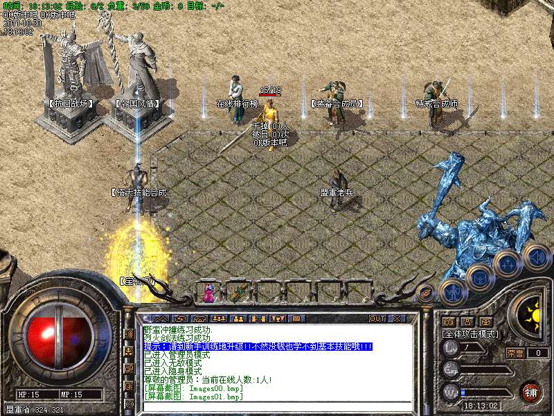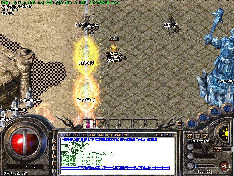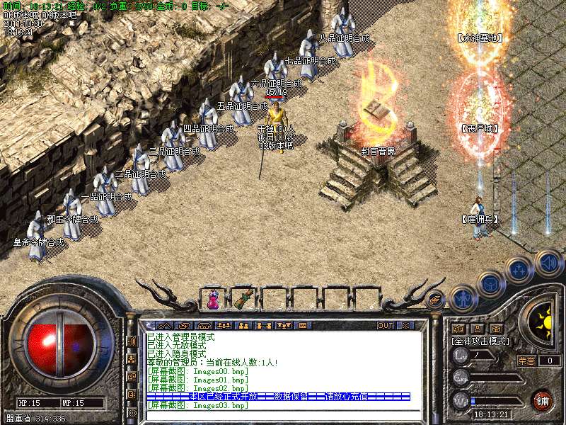 一.【地图介绍】:练级地图为、盘古、石墓、生死之间、幻境三层、霸者大厅、尸魔三层.特别自助刷怪地图恶魔广场为5倍经验*三倍经验石可实现15倍经验