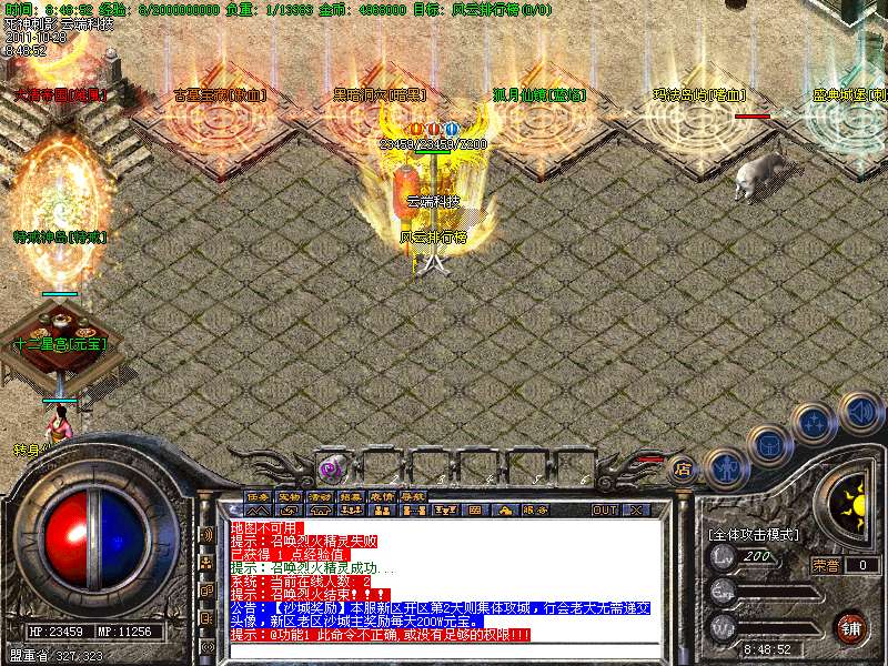 【更新】财富劫阵,BOSS爆出财富神石可以启动财富阵,启动的同时可以随机获得元宝!!满188层土药将会出现大量的元宝!!具体请查看土城财富劫阵NPC!!