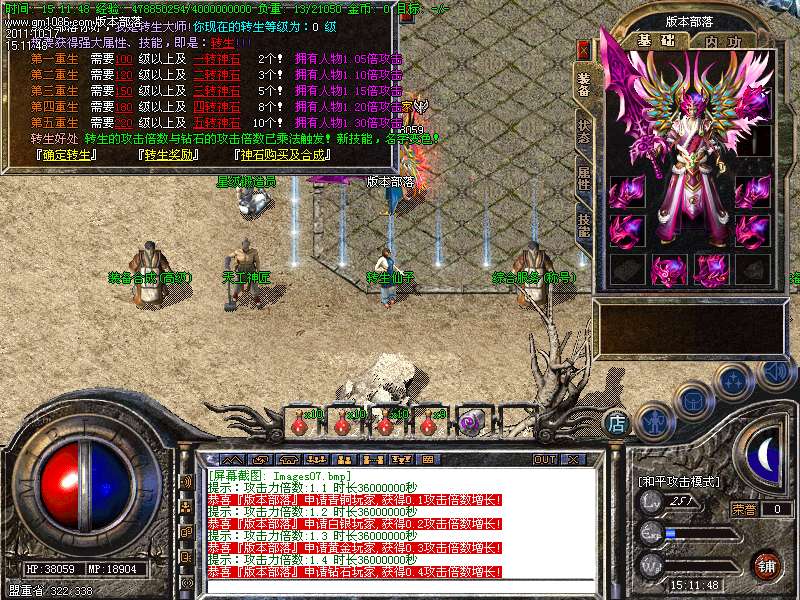 【更新】更新转生系统,1-5转,转生后每转都可以获得相应属性点,每转可获得强悍技能.详情请看转生仙子!