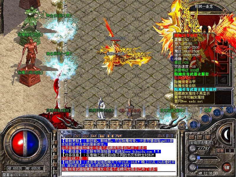 【最新更新】:新技能。新地图。尽在除魔传奇。大家尽情体验传奇传世一条龙秋枫工作室的最新版本。