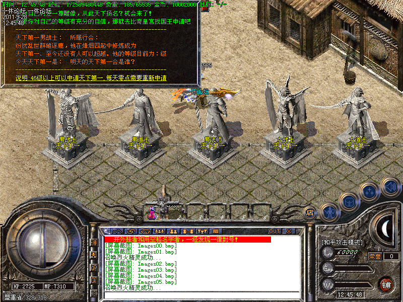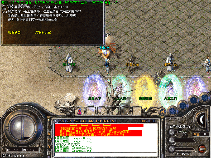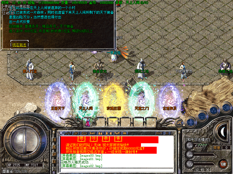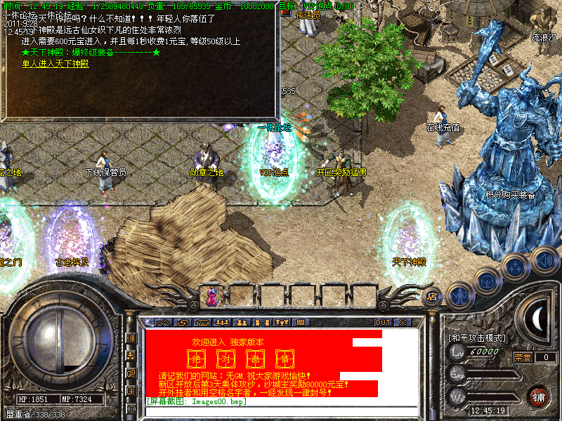 提示:本服务器高级怪物30分钟刷新,沙宝阁怪物60分钟刷新,新衣服暴率为1/50。赤月首饰暴率为1/20,赤月武器1/50。武器最高可升级7点,1分钟可取。祖玛教主,烟花恶魔,赤月恶魔出屠龙嗜魂,地藏王出霸者之刃!