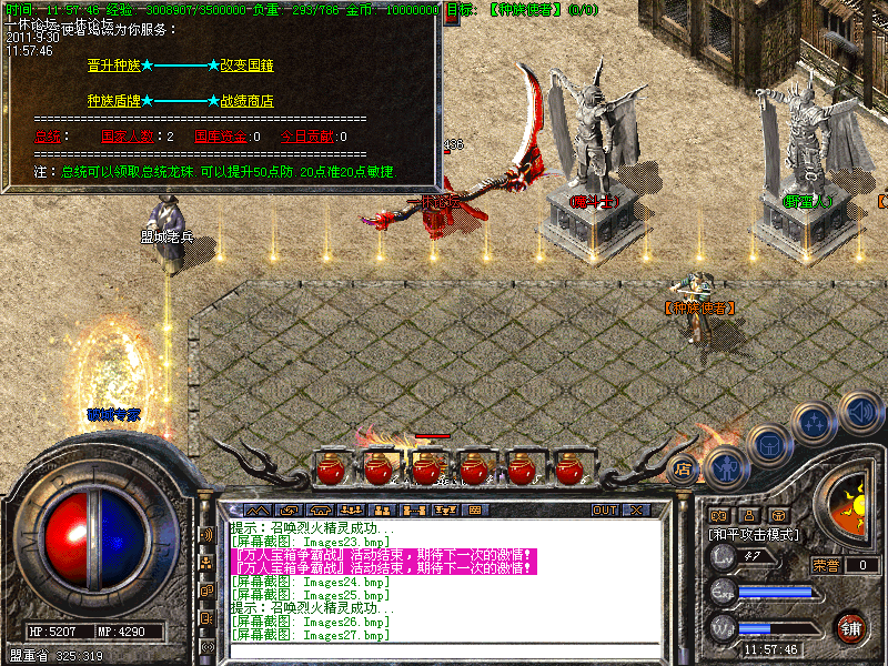 快速升级地图为日本大营和赤壁,怪物经验每只都有1000W以上。