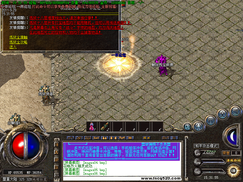 经验为盛大的500倍在传送员处直接传送到各地图的中层,免得一层一层的跑去麻烦.