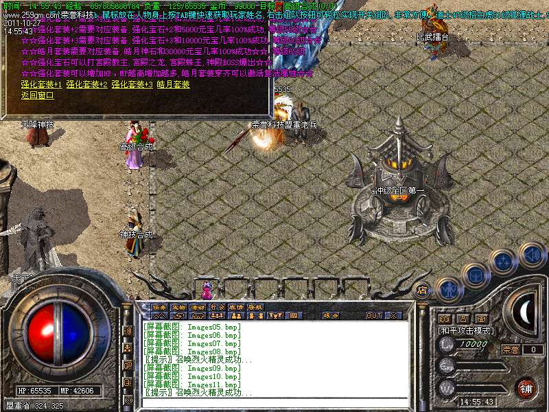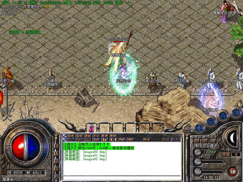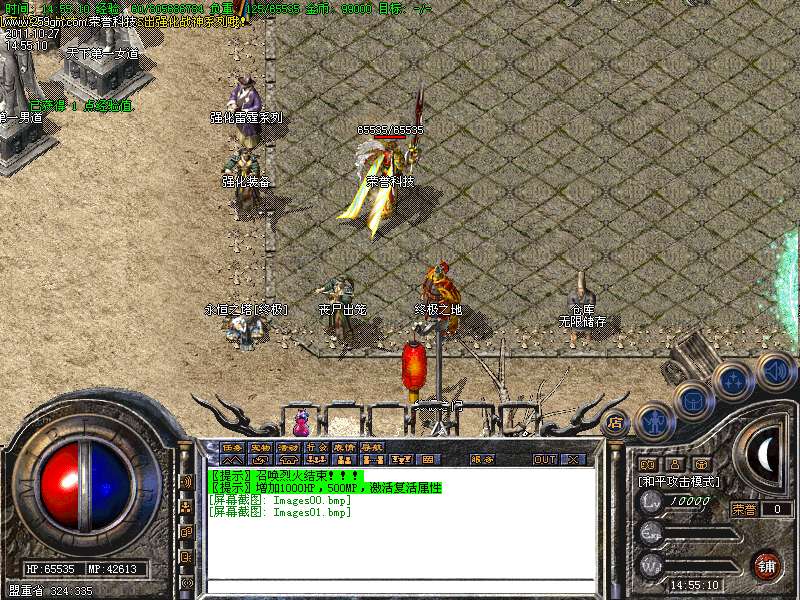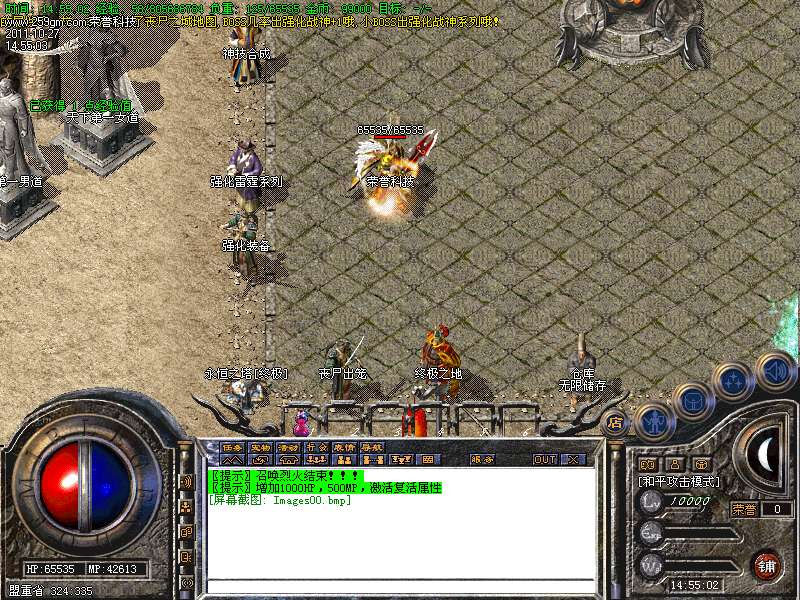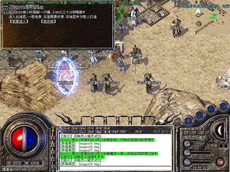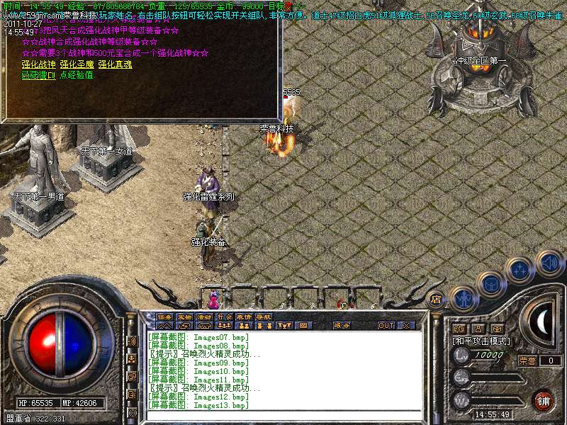 9.高级BOSS出3大神技书页,凑齐4个字可以合成,书页可以打高级BOSS爆出.尸王大殿每二个小时刷新一只宝石使者可以爆强化宝石!