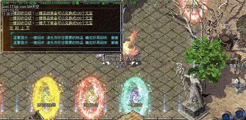 【装备回收】:所有装备一键回收,只要你有时间元宝不是问题!升级送终极
